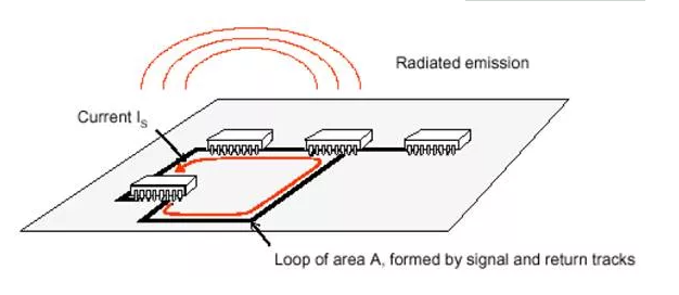 产生辐射的发射器件的物理尺寸。射频(RF)电流将会产生电磁场,该电磁场会通过机壳泄漏而脱离机壳。PCB上的走线长度作为传输路径对射频电流具有直接的影响。