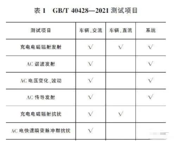 为了保障车辆充电的良好性能,这些测试项目在车辆研发阶段,都需要在关键部件和整车上测试许多遍。所以说,电动汽车虽然结构简单,但是至少在充电EMC与安全方面,正在逐渐引起汽车行业的重视。下表所示为GB/T40428—2021对电动汽车的充电EMC要求,测试项目如表1所示。