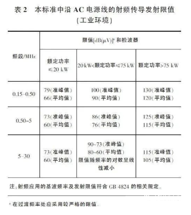 另外,该标准相比UNR10第六版关于充电测试要求,增加了工业环境下的沿AC电源线的射频传导发射限值,如表2所示。