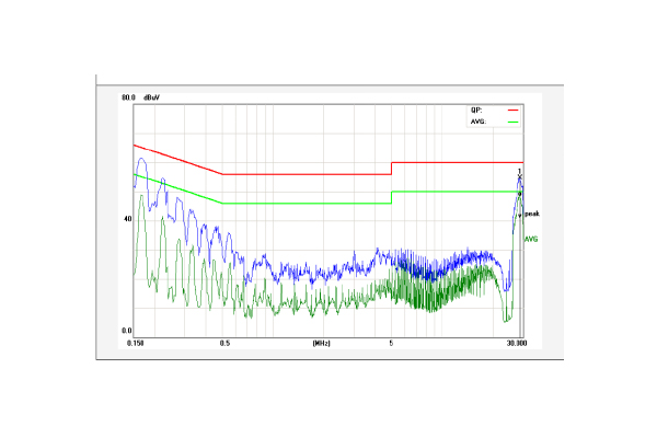 下图为差模干扰引起的传导FALL数据,该测试数据前端超标,为差模干扰引起: