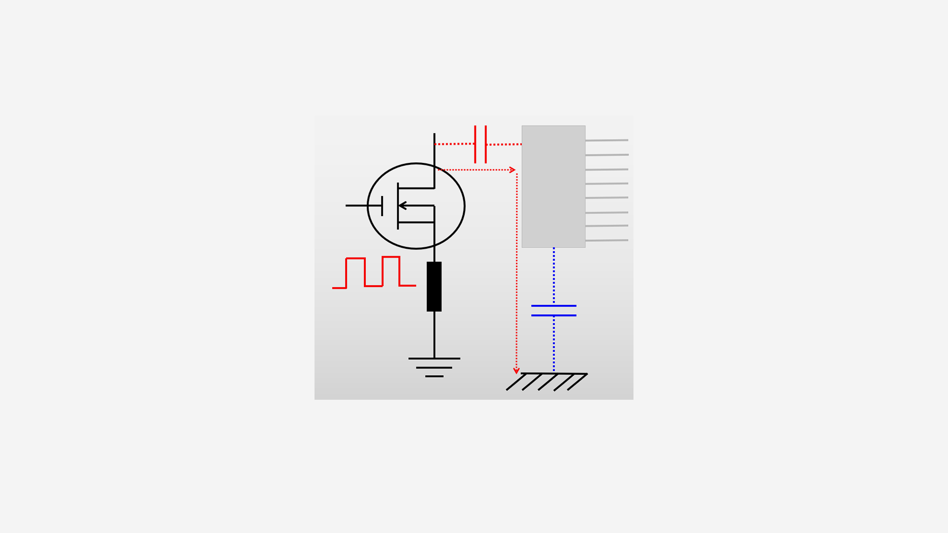 原边MOS管寄生电流环路:开关MOS管的散热片悬空时,开关MOS管与其散热片之间的分布电容,散热片与参考地(PE地)之间的分布电容,串联起来构成高频电流环路。