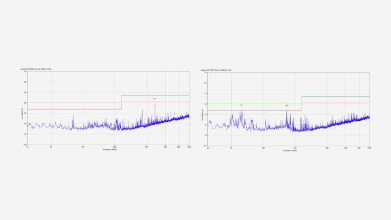 案例现象描述:某款冰箱产品使用变频压缩机,功率骚扰测试发现多个频点AVG、QP值均不满足6dB余量管控要求。