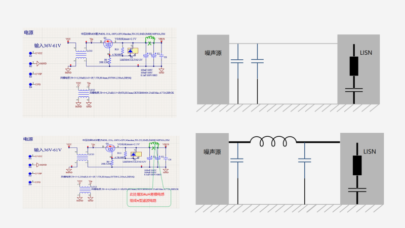 问题解决方案:①在电源输入端滤波电路中增加差模电感,组成π型差模滤波电路;②经过飞线验证试验确认,差模电感感量≧4uH就可以满足余量管控标准。
