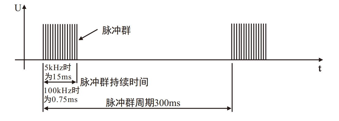 j.脉冲群周期:300(1±20%)ms。